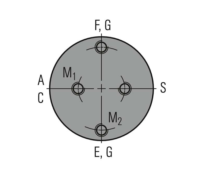 Designation and positions of supply connections, pull-off and jacket threads