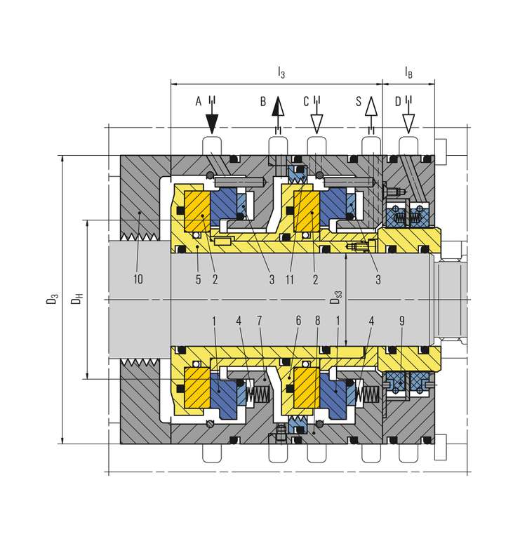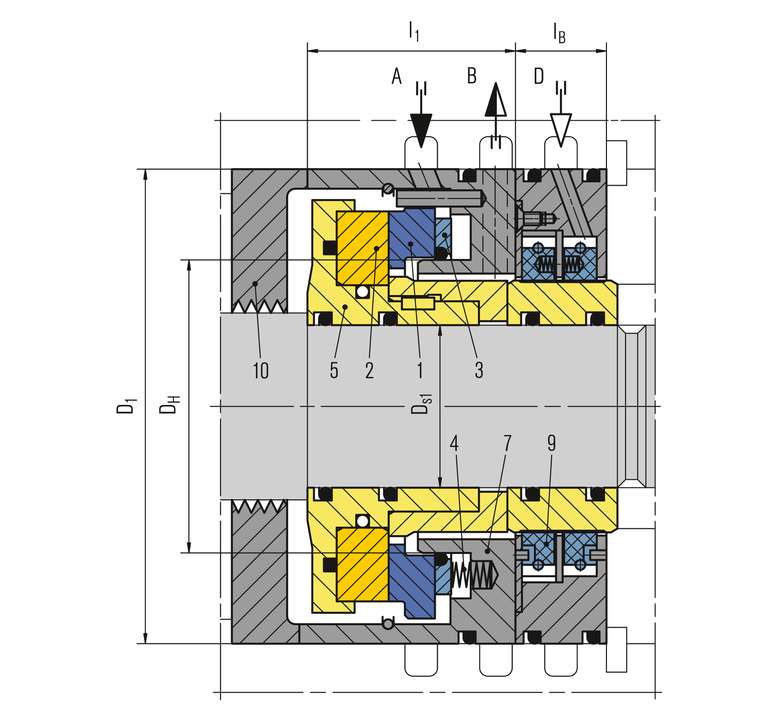 permitted (seal gas pressure p3 > p1). This is used when a neutral seal gas is
